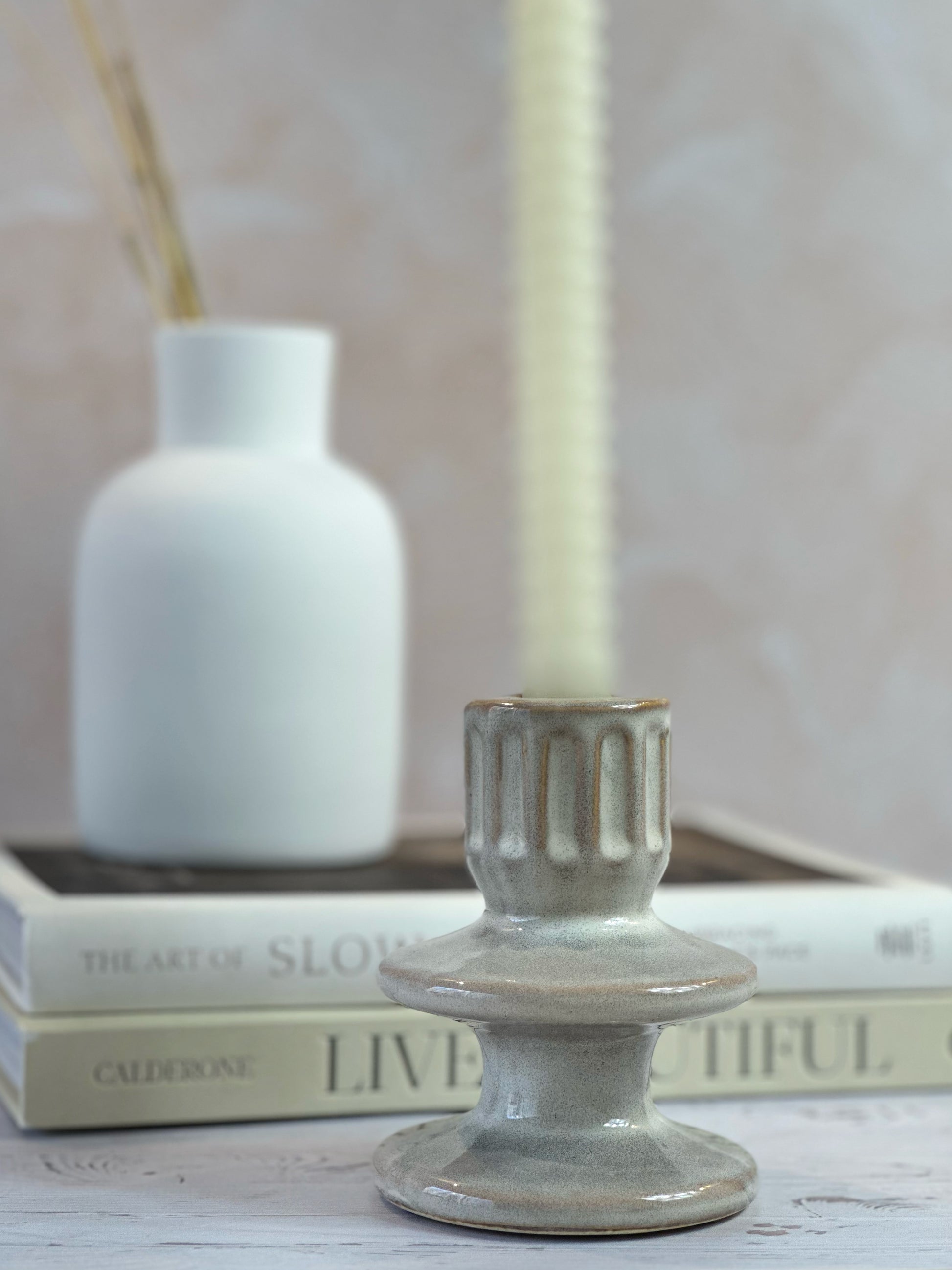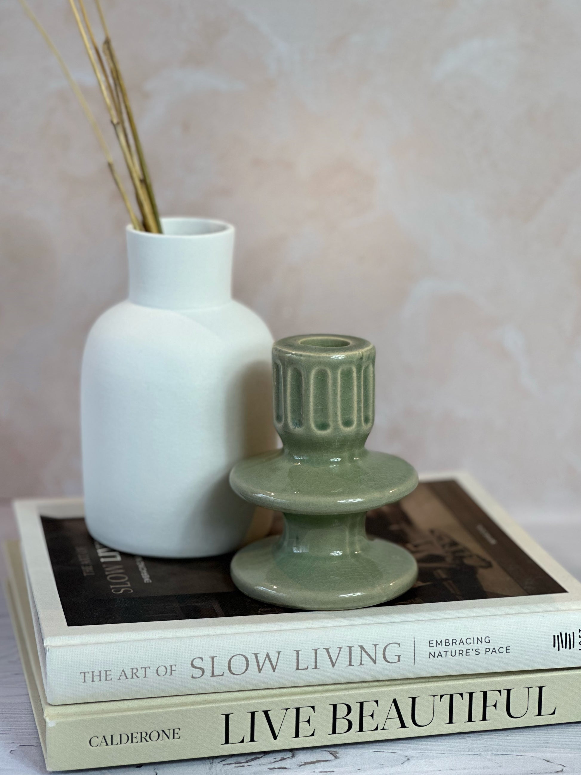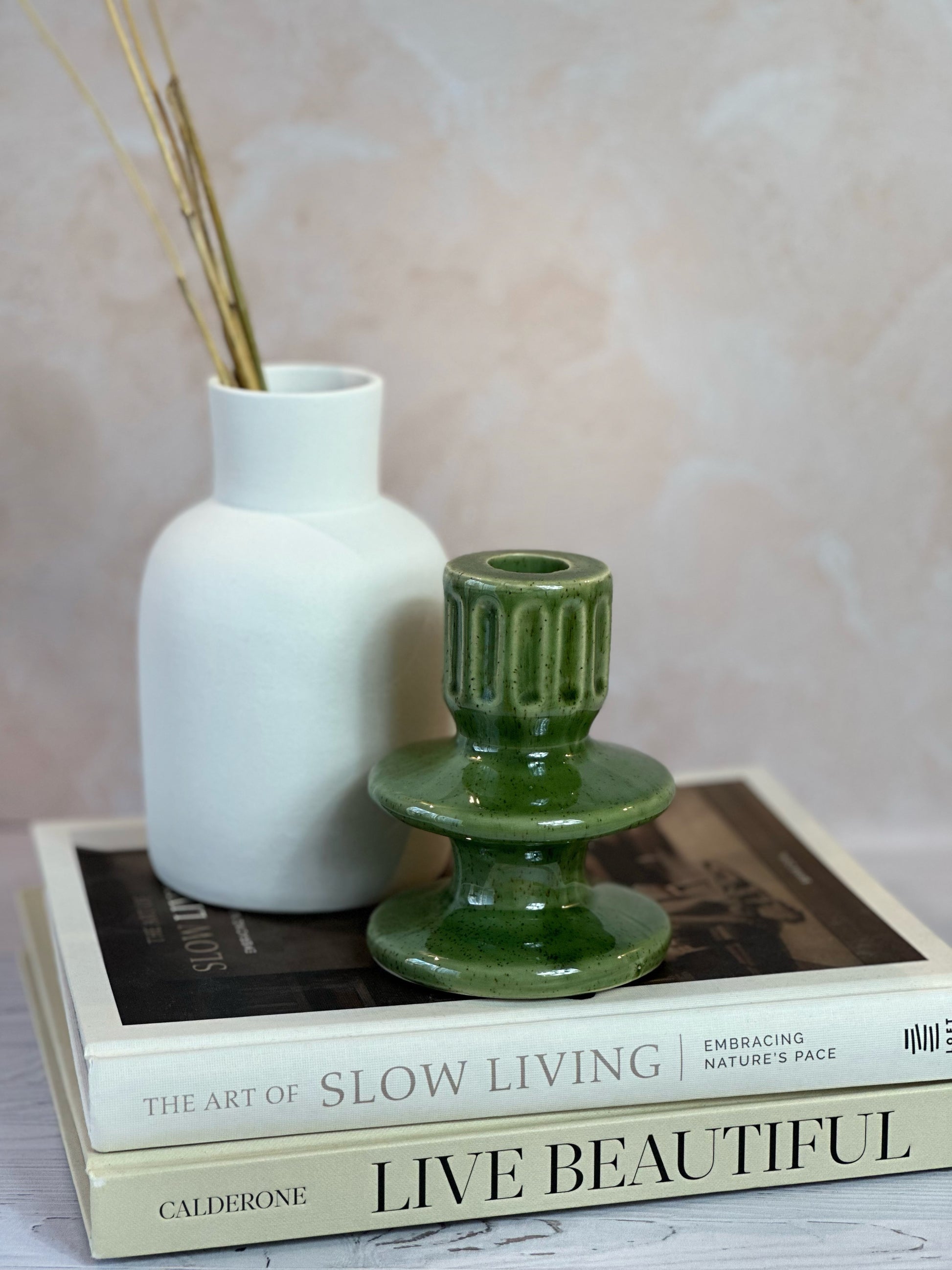 Fabriqué artisanalement, il n’existe pas deux pièces identiques. Chaque bougeoir possède ses propres variations de teinte, ce qui lui confère un charme singulier et authentique.