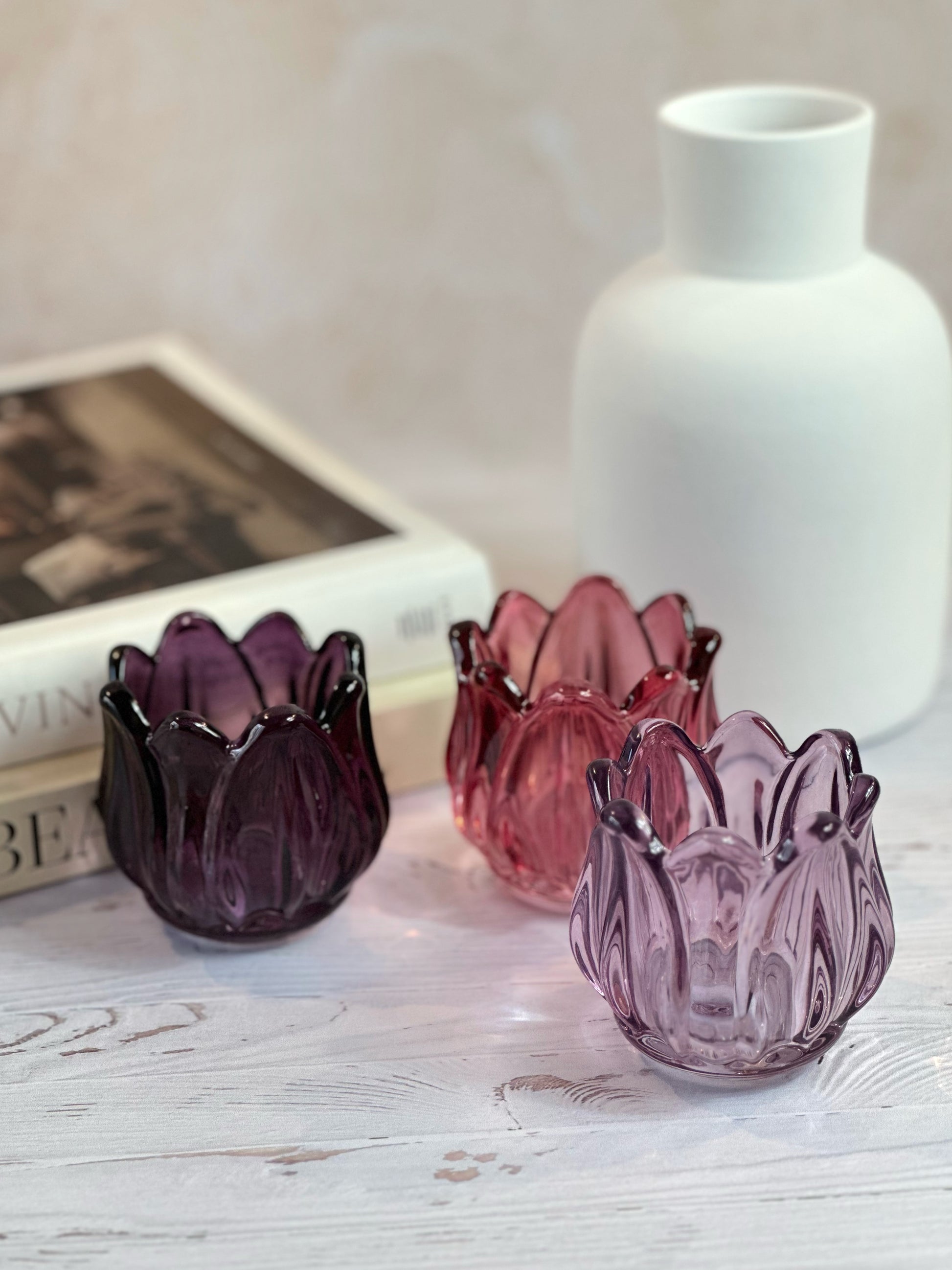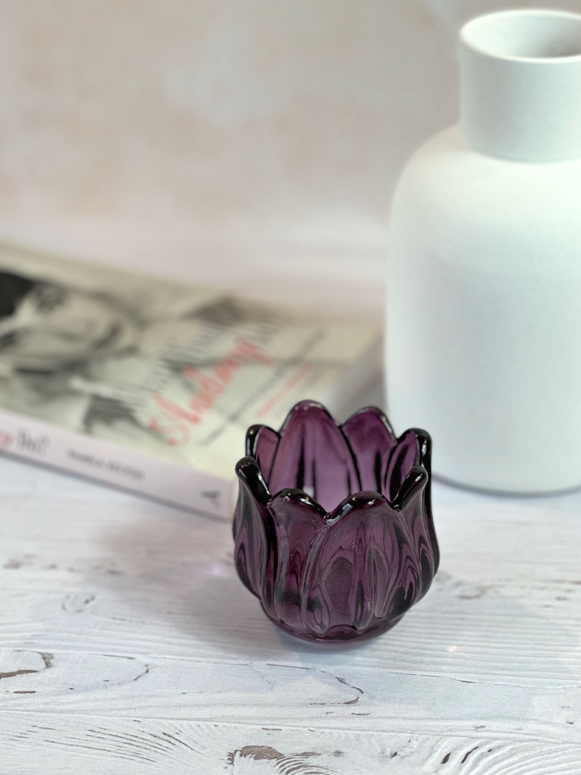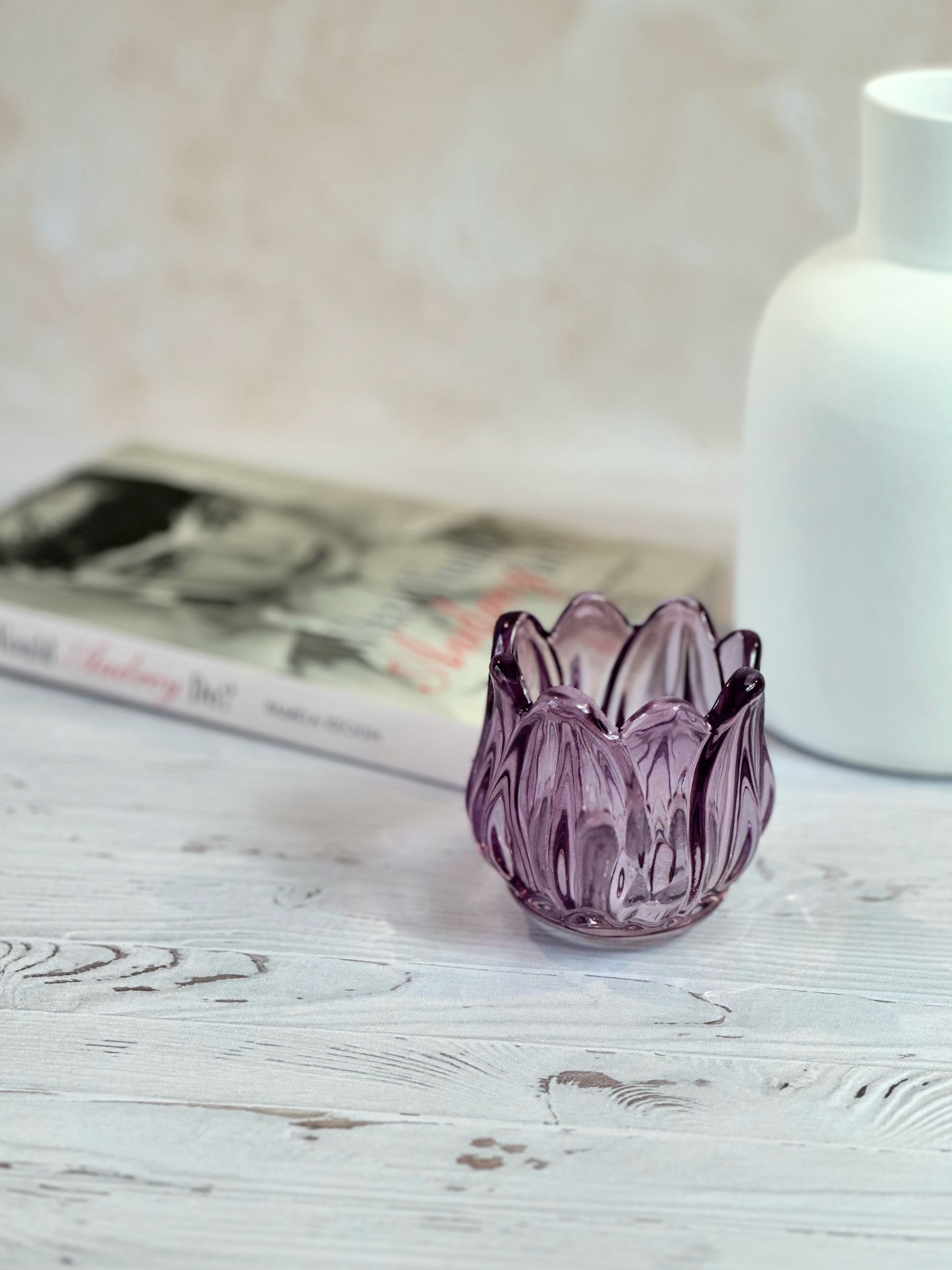 Inspiré par la délicatesse des tulipes du printemps, ce bougeoir en verre joue avec la lumière pour créer une ambiance douce et chaleureuse. Décliné en vert, jaune, rose, lila et violet, il apporte une touche délicate et élégante à votre décoration.
