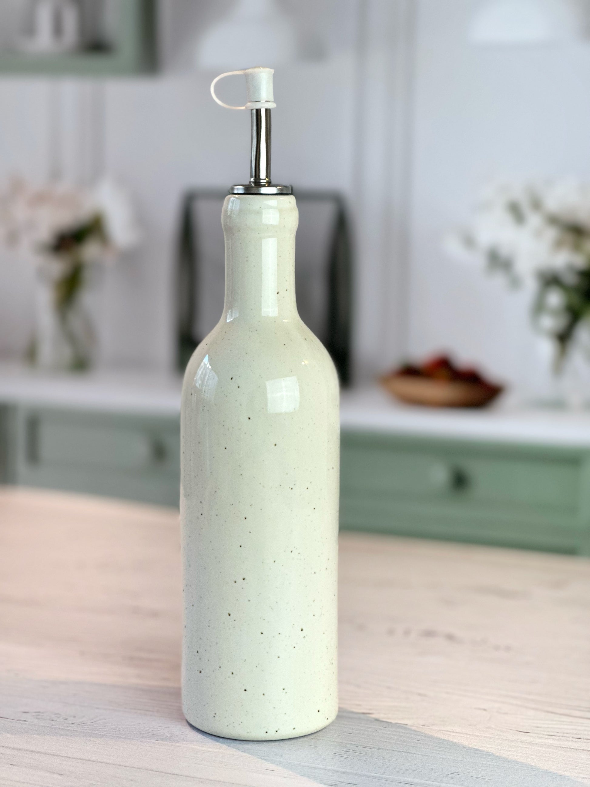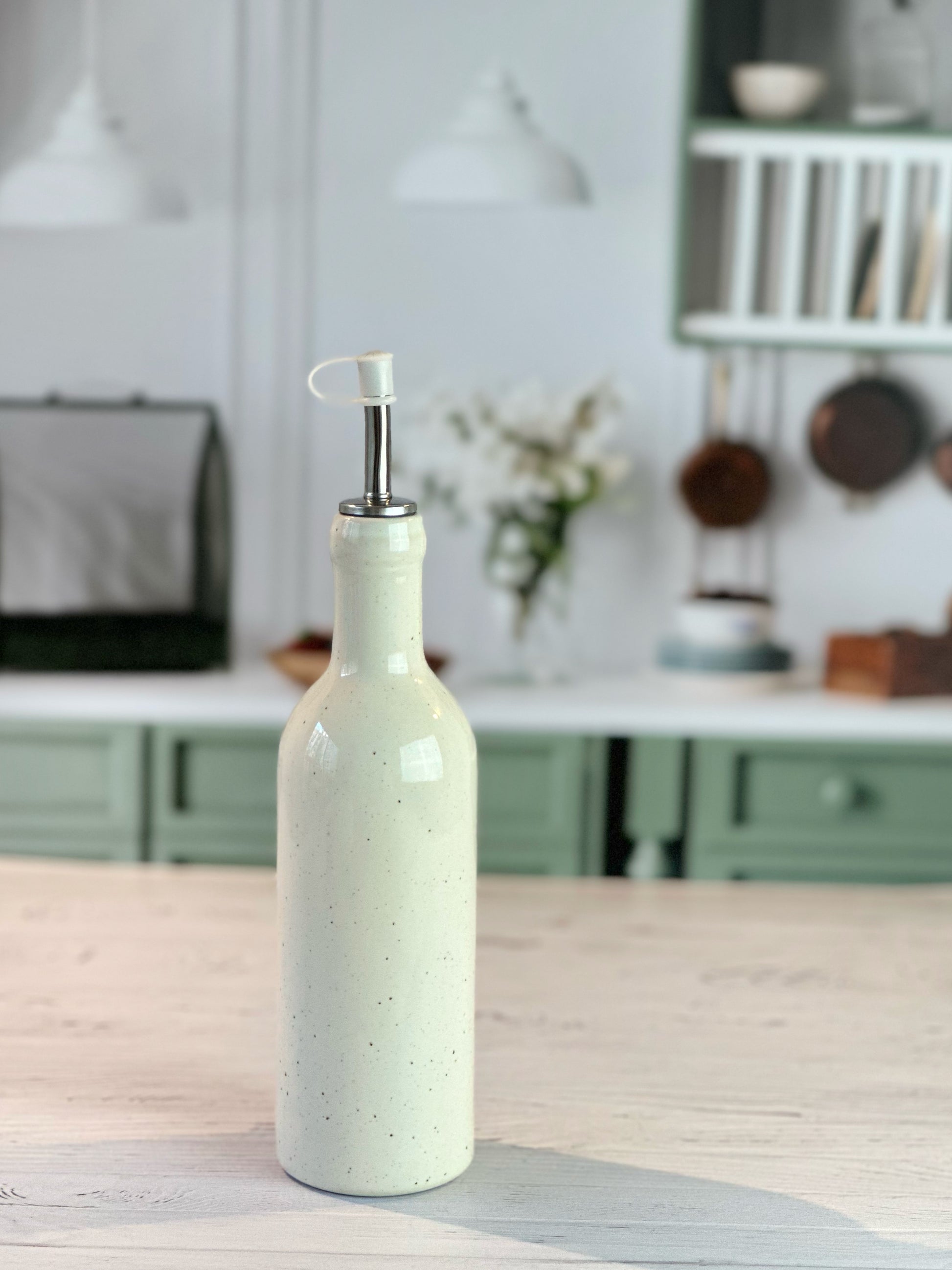 Cela faisait longtemps que je cherchais un contenant opaque pour mon huile d'olive. Celui-ci est parfait pour assaisonner les plats et garder l'huile à l'abri de la lumière pour une conservation optimale ! Sa fabrication artisanale en fait une belle décoration pour la table.
